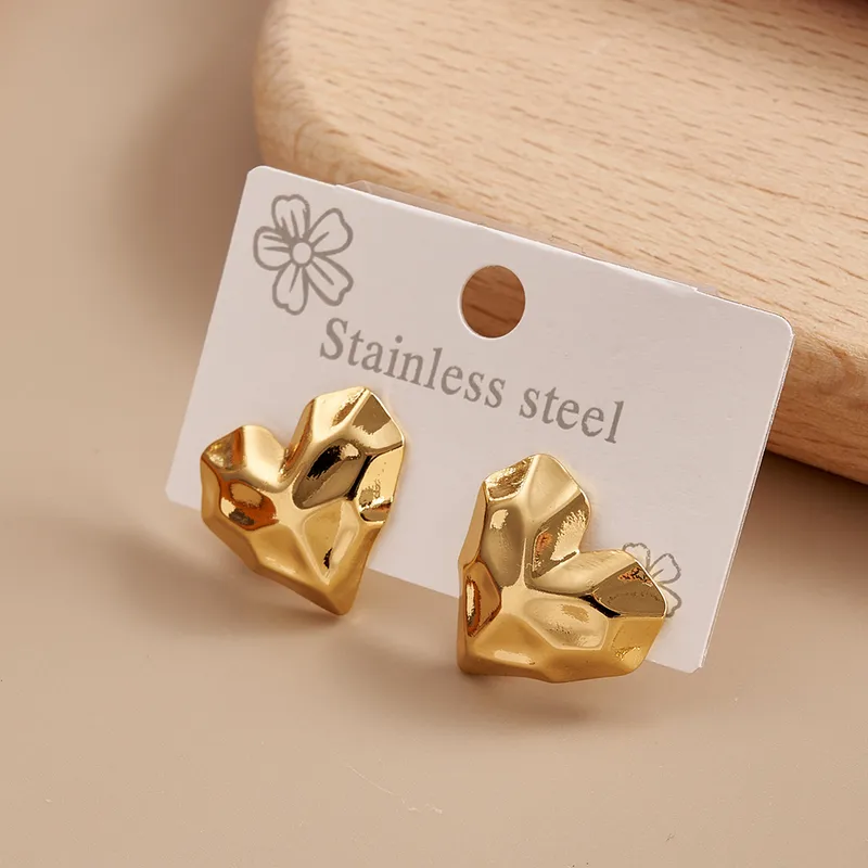 Add an avant-garde touch to your romantic aesthetic with our "Crushed Velvet" Heart Studs. These aren't your average heart earrings; featuring a unique, faceted "crumpled" texture, they catch and shatter light from every angle for a high-fashion, molten gold effect.